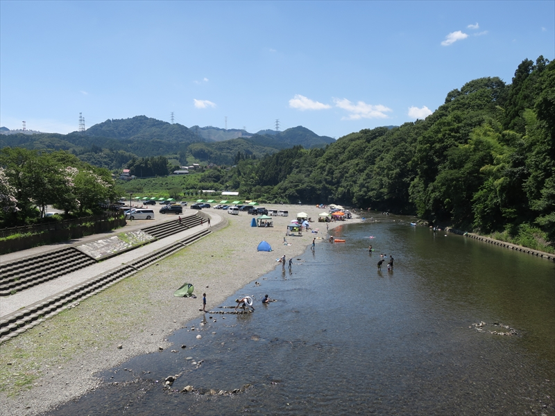 駅から徒歩5分ほどにある「秋川橋河川公園」で川遊びが目的です。
