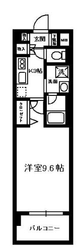 洋室9.6帖の1K
